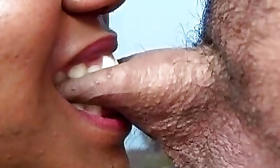 Outstanding bitch in polka pop dress provides dude with great blow-job