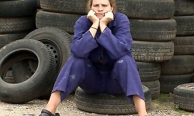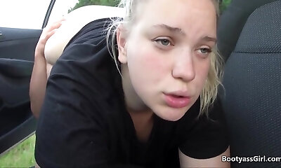 German Teen let Foreigner cum in her Taut Pussy for help with Truck