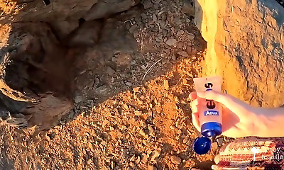 Outdoor quickie rectal intrusion with a huge cock for a Russian MILF Blonde
