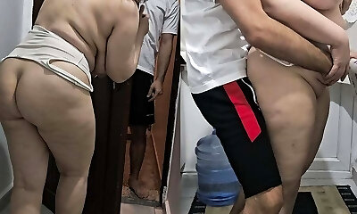 Stepson surprises his humungous-ass stepmother with a delicious ass blowjob and ends up providing her a good fuck in her fat pussy