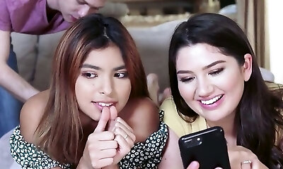 My virgin daughter sucks a dick for the first time, threesome with my wifey double cum on her beautiful guiltless face