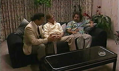 Sexy woman gets sprawled over the sofa and poked hard by the group lewd men