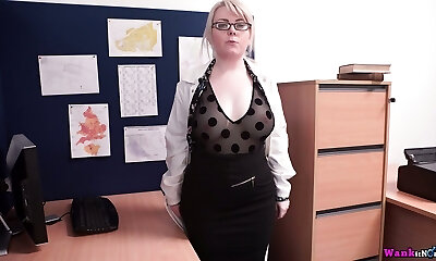 Curvy huge blonde with sexy glasses and huge boobs moans as