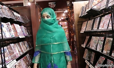 Hot Pakistani chick Nadia Ali sucks xxl dick in the glory hole guest room