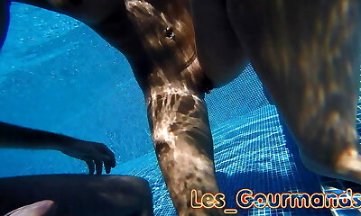 MILF Plumbed in all positions in the pool, huge fuck stick and handjob underwater
