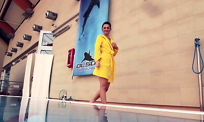 Jaw-dropping Bruenette Stript Im Pool